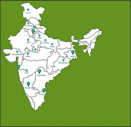 Delhi, Lucknow, Jipur, Ludhiana, Mumbai. Pune, Nagpur Indore, Kolkata, Patna, Ranchi, Bhuvneshwar, Chennai, Madurai, Bangalore Hyderabad, Kochi,